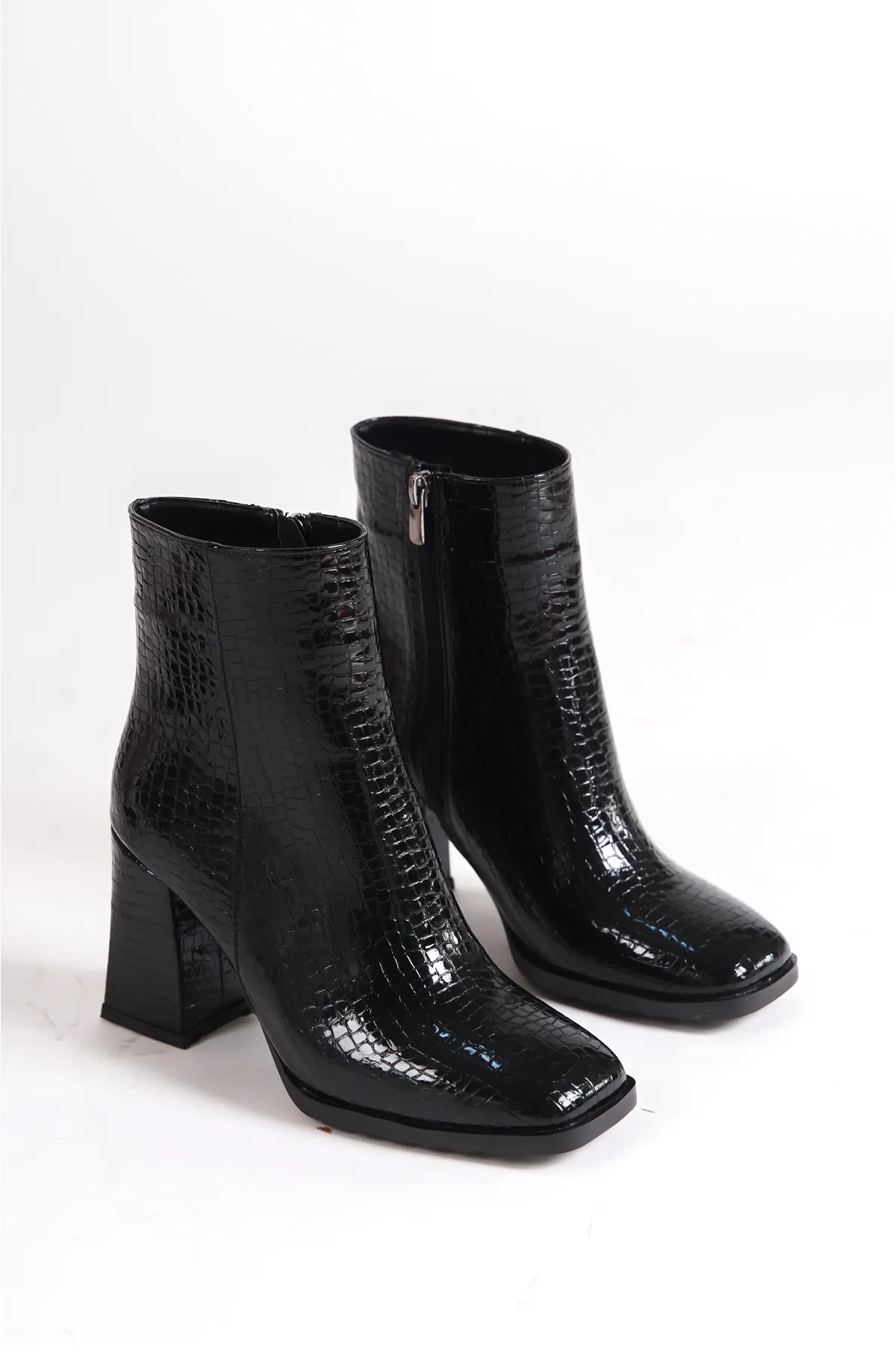 چکمه های پاشنه دار زنانه با زیپ پشت بند ناییس مشکی برند Marjin