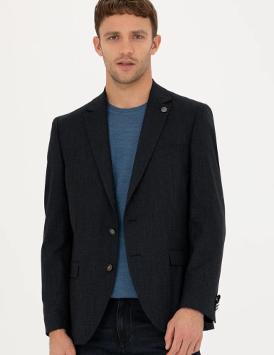 ژاکت دکمه دار ترکیبی کتانی معمولی فیت آبی سرمه ای