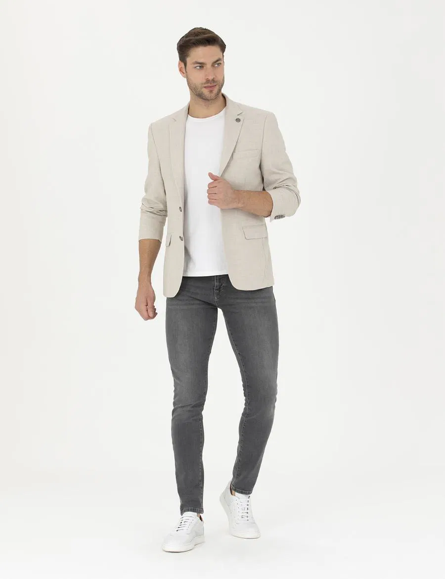 بژ سابق ژاکت کتانی ترکیبی اسلیم فیت