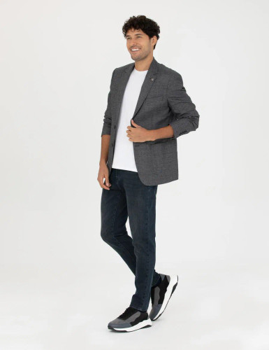 ژاکت ترکیبی کتان آنتراسیت فوق باریک