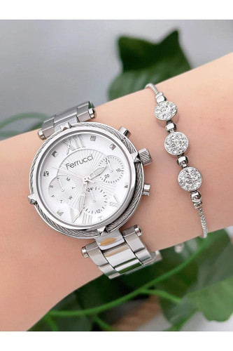 ساعت مچی زنانه + دستبند کد zmfer045 برند Ferrucci