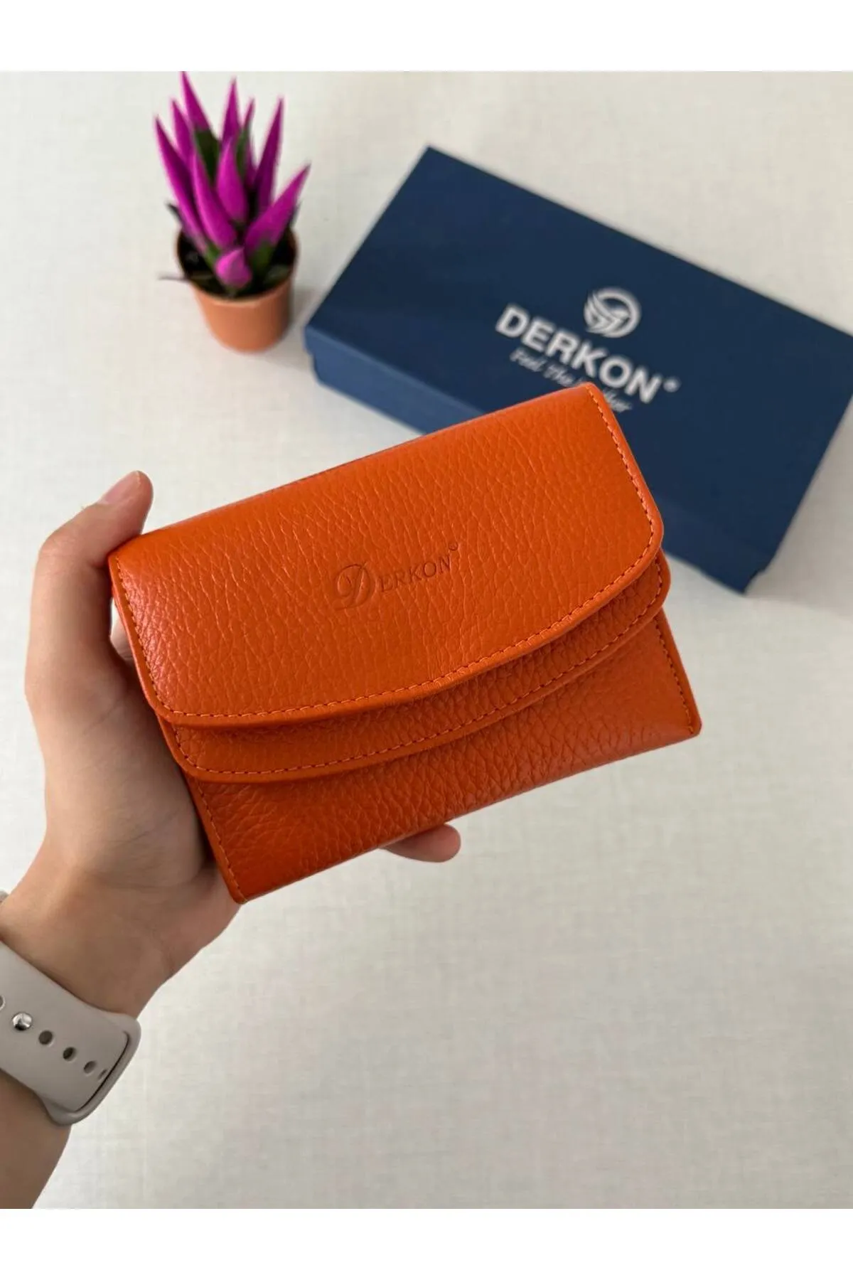 کیف پول زنانه Derkon از چرم اصل، رنگ نارنجی