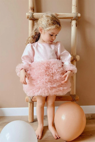 لباس پرنسسی دخترانه رنگ پودری آستین بلند کد Asel LM913 برند Le Mabelle