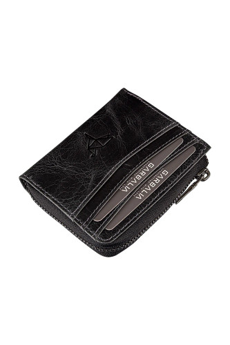 کیف پول مینی کارتی زیپ دار مشکی و چرم اصل فیگو برند Garbalia