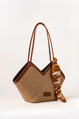 "کیف زیپ دار حصیری زنانه جود با جزئیات روسری و بند شانه برند TECER