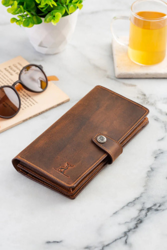 کیف پول یونیسکس چرم اصل Sl-2161 با محفظه تلفن برند SANAT LEATHER