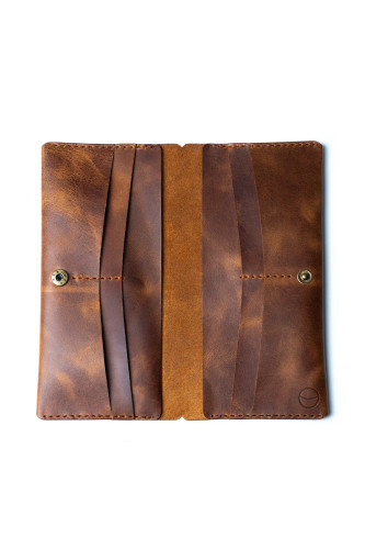 کیف پول چرم اصل سکویا، چرم قهوهای مایل به زرد، چرم واقعی، کیف پول چرم درجه یک، کیف پول دست ساز برند Atelier Duos