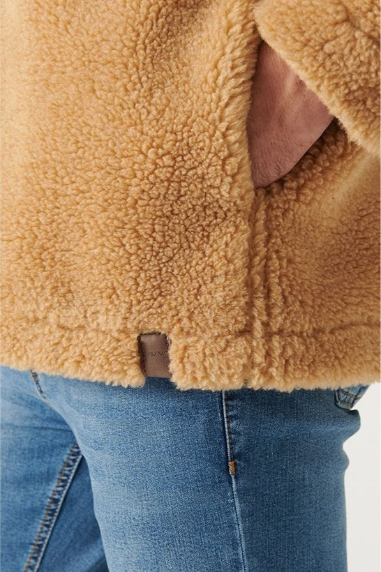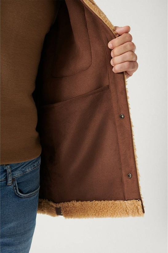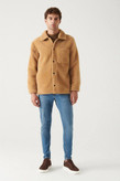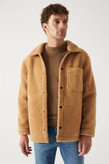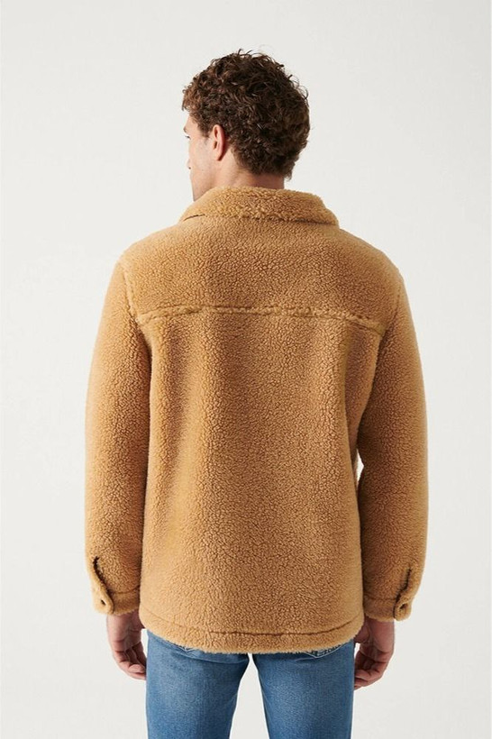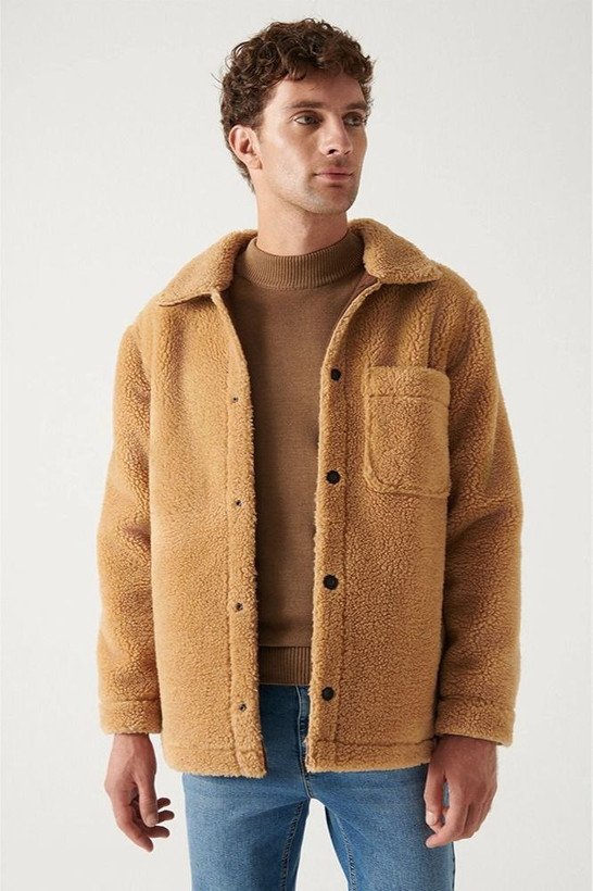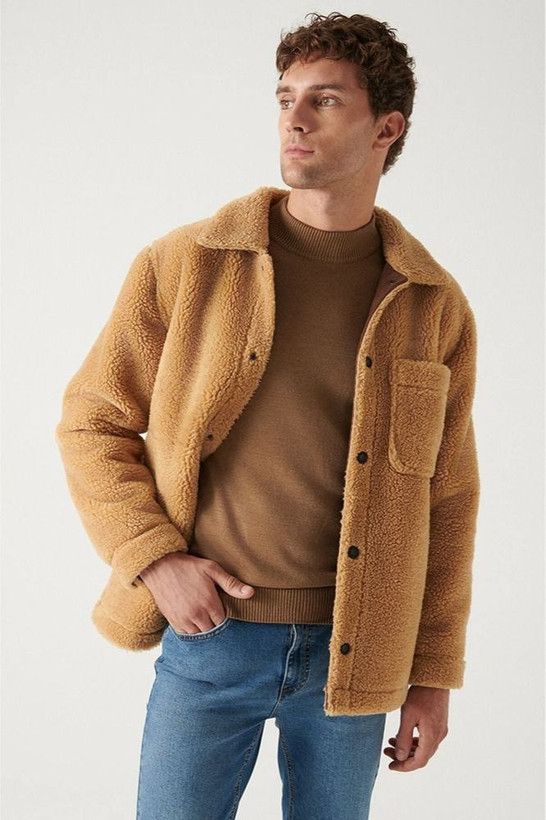 ژاکت خز یقه کلاسیک بژ مردانه در داخل جنس جیر مخملی راحت کد A22Y6042 برند Avva