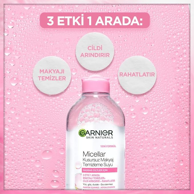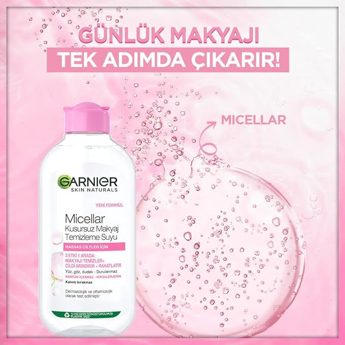 در یک مرحله: - آرایش را پاک می کند - پوست را تمیز می کند - تسکین می دهد با فناوری میسلار خود، بدون نیاز به مالش، باقی مانده ها و چربی اضافی پوست را مانند آهنربا جذب می کند.