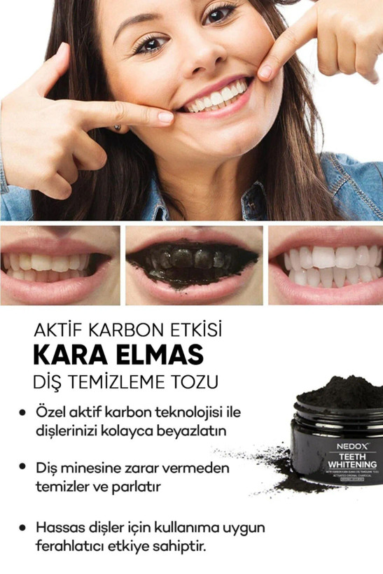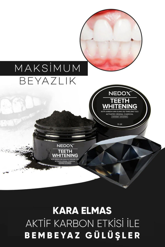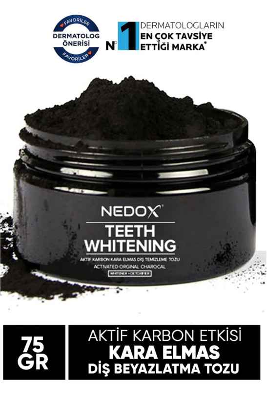 پودر سفید کننده دندان با کربن فعال الماس سیاه 75 گرم برند NEDOX