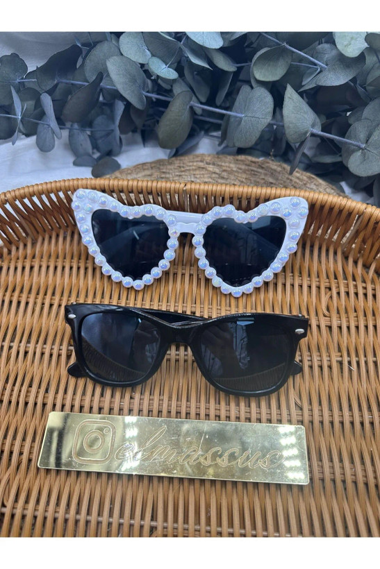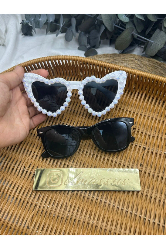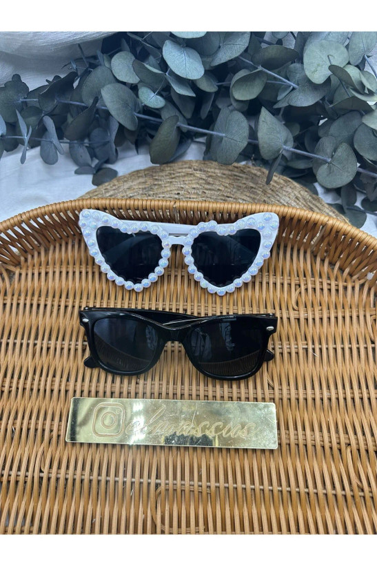 E Diamond Pearl Heart Bride To Be Glasses عینک افتابی 1 سفید 1 مشکی