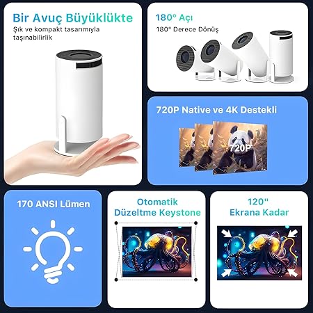 🎞️ فوکوس دستی و تصحیح کیستون: تصویر را با وضوح دلخواه خود با فوکوس دستی و تصحیح کیستون عمودی تنظیم کنید. می توانید با انجام اصلاح چهار نقطه ای با کنترل از راه دور، تصویر را به دلخواه تراز کنید.