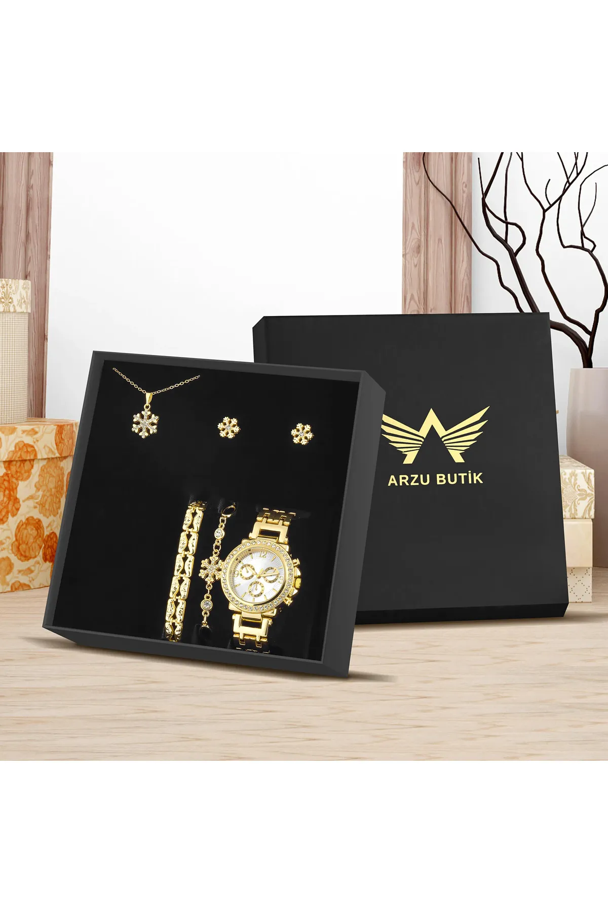 ست هدیه گوشواره دستبند ساعت مچی ساعت مچی زنانه Boutique Arzu