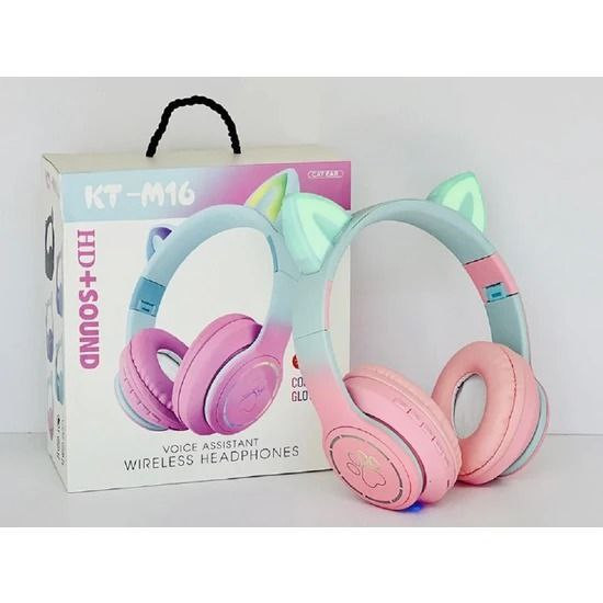 هدست بلوتوثی برند Bty مدل KT-M16 طرح گربه رنگ صورتی با نور LED