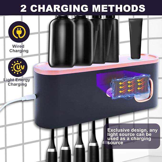 - ضدعفونی با نور بنفش: جا مسواکی خود را روی جا مسواکی ضدعفونی کننده UV قرار دهید، ضدعفونی با نور بنفش میتواند ۹۹.۹۹٪ میکروبها را از بین ببرد، و زندگی شما را سالمتر کند. یک دکمه برای روشن کردن، تایمر ۵ دقیقهای برای روشن کردن و استریل کردن در هر زمان