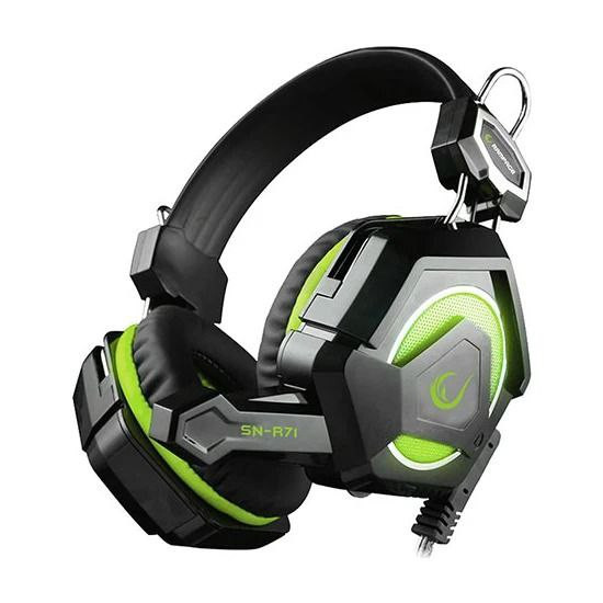 هدست گیمینگ برند Rampage مدل SN - R71 رنگ مشکی سبز با میکروفن