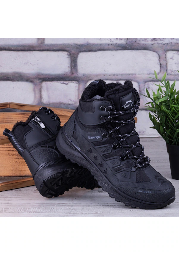 چکمههای زمستانی مردانه Slazenger 4k، نیم بوت زیپدار، مشکی