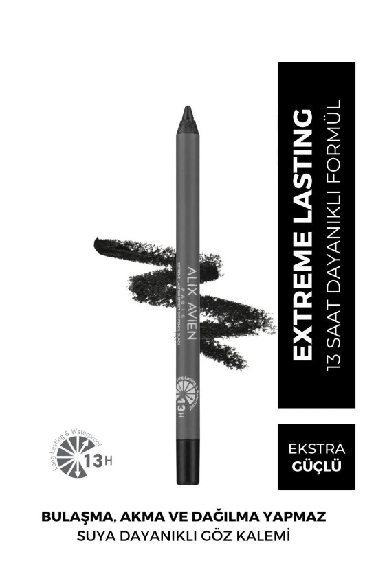 مداد چشم مشکی ضد آب Alix Avien-13 Hours Lasting Effect-Extreme Lasting Eye Pencil Black. به لطف رنگدانه های قوی و شدید، در تمام طول روز به عنوان یک عنصر مکمل آرایش ماندگاری دارد.
