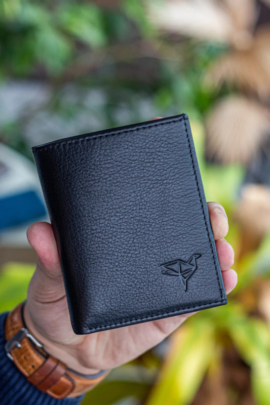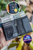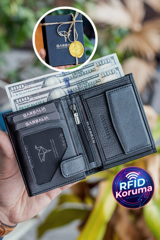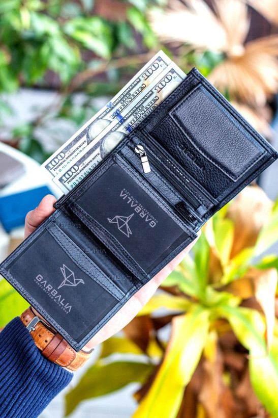 کیف پول مردانه مشکی چرم اصل با محفظه سکه JCKSN101 برند Garbalia