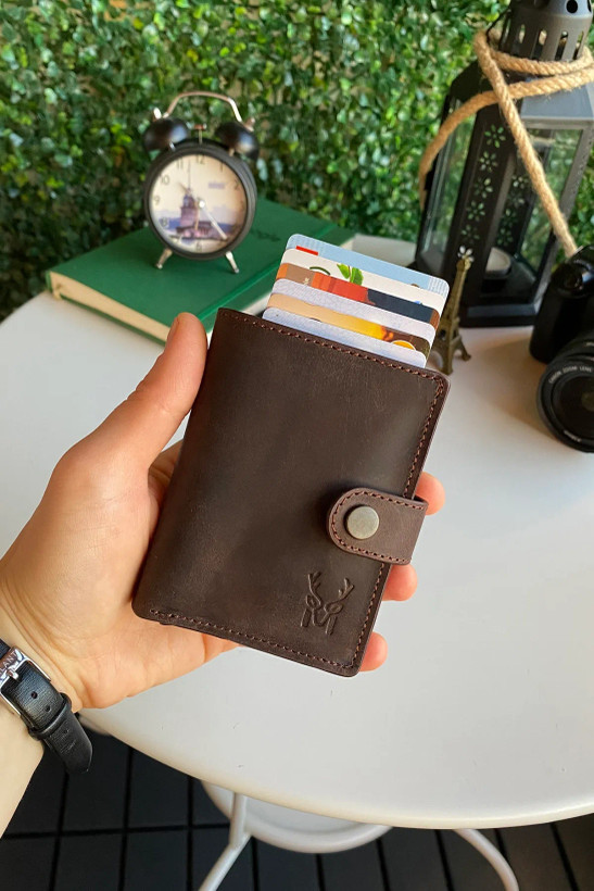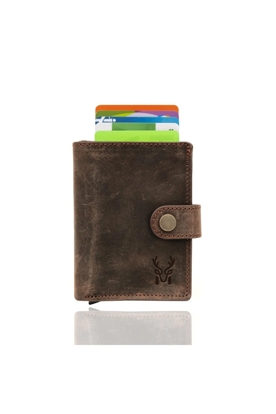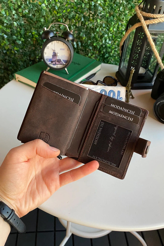 کیف پول کارتی هوشمند مردانه قهوه ای محافظ چرم اصل Rfid با مکانیزم ضد سرقت برند Modica