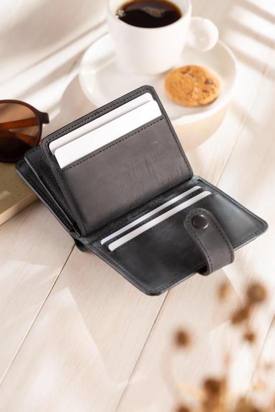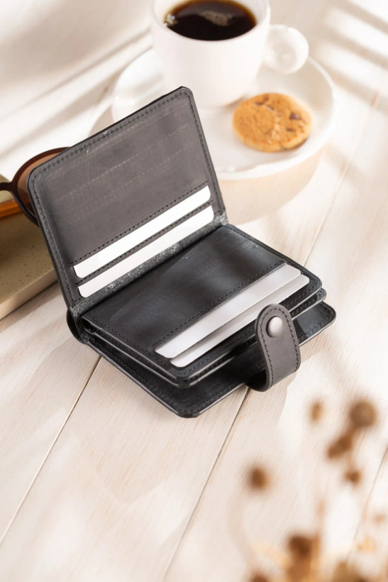 ابعاد محصول در حالت بسته 8.5*10 سانتی متر می باشد. محفظه ها و جیب های بیرونی: 1 محفظه پول