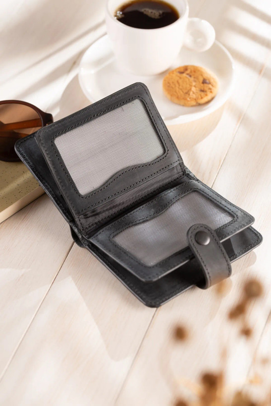 نام محصول: کیف پول چرم اصل ConceriaPelle-Trendy با بست و نگهدارنده کارت هدف استفاده: به عنوان یک مدل مناسب برای روند جدید کیف پول طراحی شده است که در آن کارت های اعتباری، بدهی، شناسه و گواهینامه رانندگی به راحتی همراه با پول کاغذی قابل حمل است. . نوع چرم و لوازم مورد استفاده در سطوح داخلی و خارجی محصول: سطح بیرونی نوع Crazy Horse از پوست گوساله اصل درجه یک تشکیل شده است.