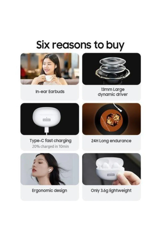هدست بلوتوث داخلی بیسیم کامل Lenovo LP5 به شما امکان میدهد با ویژگی درایور 13 میلیمتری خود، یک تجربه موسیقی بسیار واضح داشته باشید.