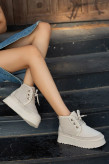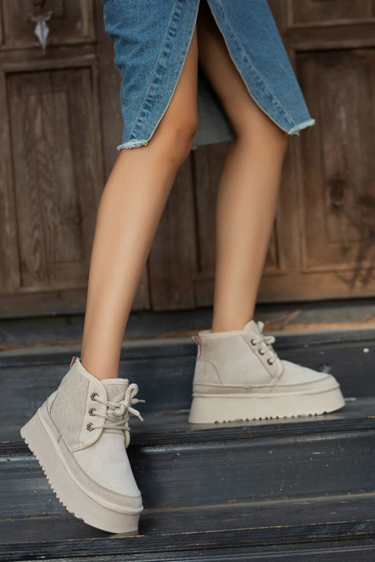چکمه های جیر واقعی با زیره زیپ ضخیم اکرو قهوه ای مایل به کرم فوق العاده بژ با خز برند Esilapark