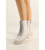 چکمه های توری با جزئیات سنگی. کفی ارتوپدی. به لطف پوشش داخلی گرم، پاهای شما را گرم نگه می دارد.